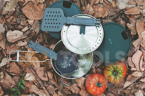 Набор удобен в транспортировке и хранении. Сложите посуду внутрь сковороды и плотно закройте тугой гибкой крышкой. В таком виде ничего не выпадет в сумке и не потеряется в дороге.