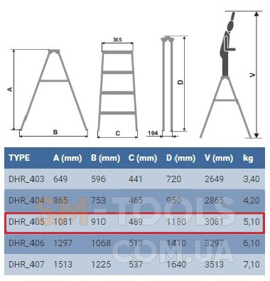 Стремянка Elkop DHR 405 - двухсторонняя стремянка предназначена для домашнего пользования. Благодаря антискользящим протекторам может использоваться как на улице, так и в помещении.