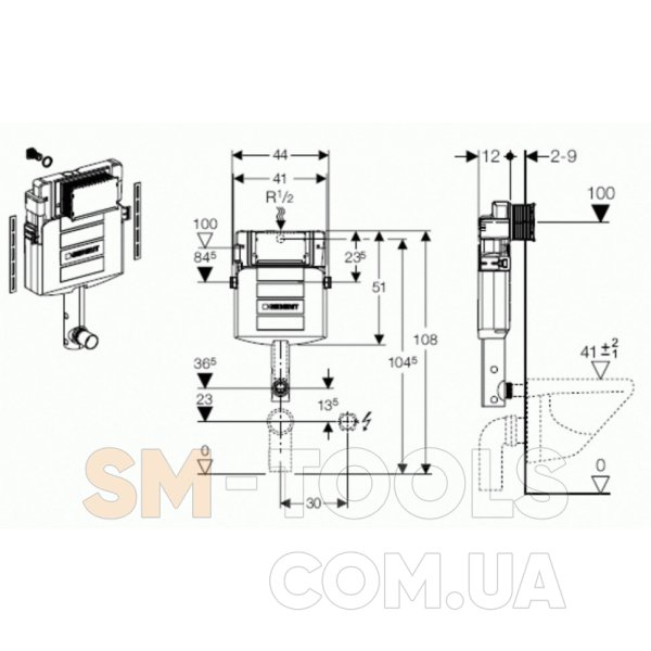 Описание Смывной бачок Geberit Sigma 109.300.00.5: