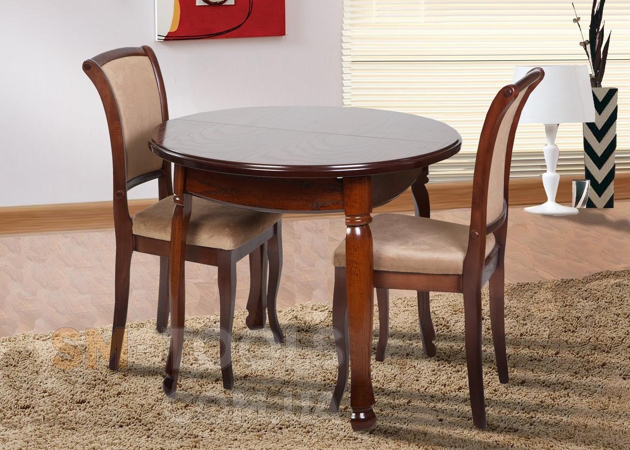 Круглый обеденный стол "Гаити" выполнен в классическом стиле. Производство: Украина. Стол раскладной, центральная вставка - 30 см. Каркас стола изготовлен и массива ДУБА, столешница — МДФ покрыта натуральным дубовым шпоном. Использование шпонированного МДФ позволяет забыть о риске рассыхания, растрескивания столешницы! Столешницы, изготовлены по такой технологии, обладают как натуральной красотой текстуры дуба, долговечны и более доступные по цене! При покраске стола используются немецкие лакокрасочные материалы с высоким уровнем глянца!