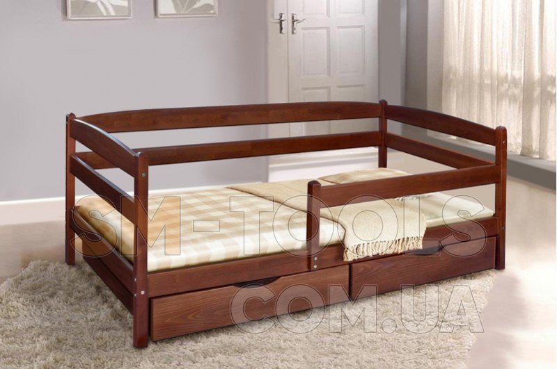 Многофункцональная модель Ева может использоваться как кровать, так и как удобный диванчик, а два выдвижных ящика для белья, игрушек и аксессуаров помогут сэкономить пространство и сохранять порядок в комнате!