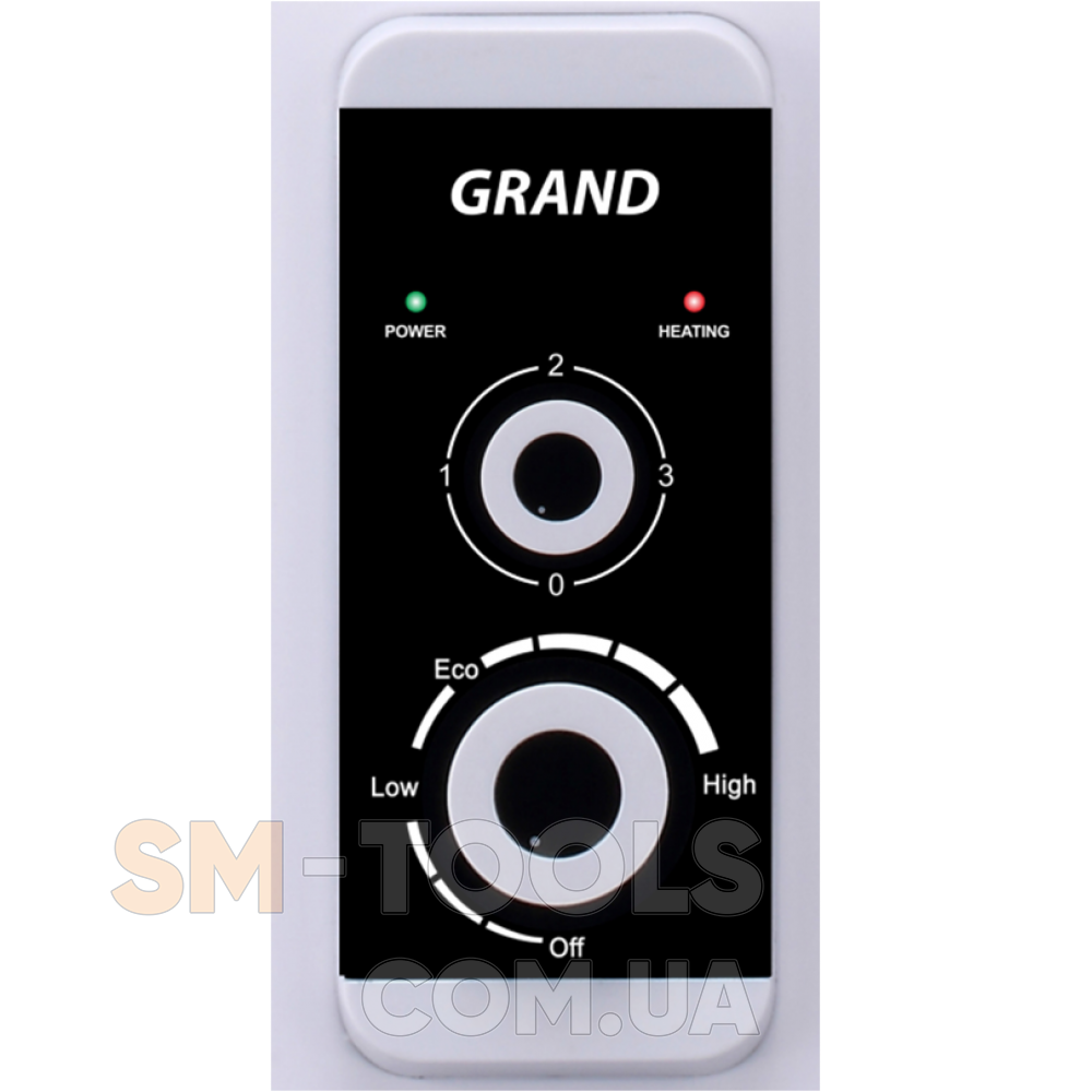 На передней стороне корпуса этой модели находится контрольная панель с двумя элементами управления (трехпозиционный переключатель мощности и терморегулятор);