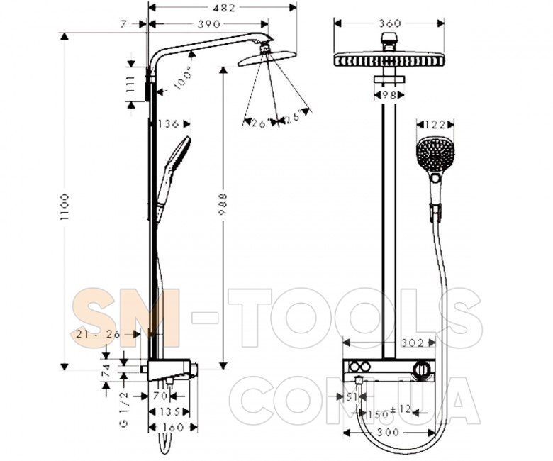 Душевая система Hansgrohe Raindance Select E 360 1jet ST Showerpipe 27288400