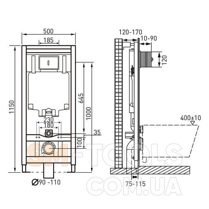 - Высота - 1150 мм + 200 мм (за счет регулируемых ножек)