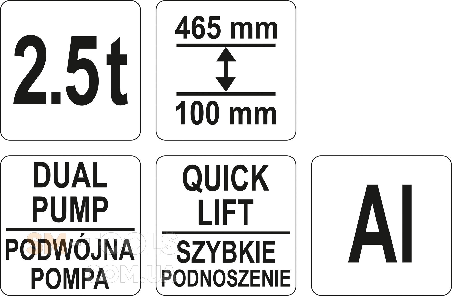 Характеристики Домкрат гидравлический подкатной YATO YT-17205 (2,5 т):