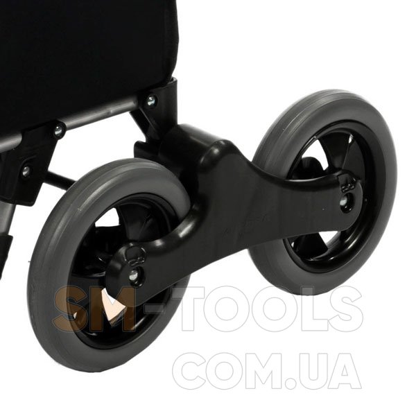 - Шасси сумки-тележки оснащено четырьмя колесами по два колеса в каждом блоке, что добавляет устойчивости и маневренности модели.