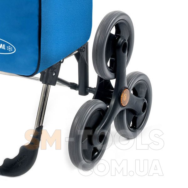 - Шасси сумки-тележки оснащено шестью колесами по три колеса в каждом блоке, напоминающие треугольник. При перемещении по ровной поверхности работает две пары колес. Третья пара необходима при подъеме по ступеньках. Когда вы тянете сумку-тележку, свободная пара колес, заезжает на следующую ступеньку, принимая тяжесть на себя.