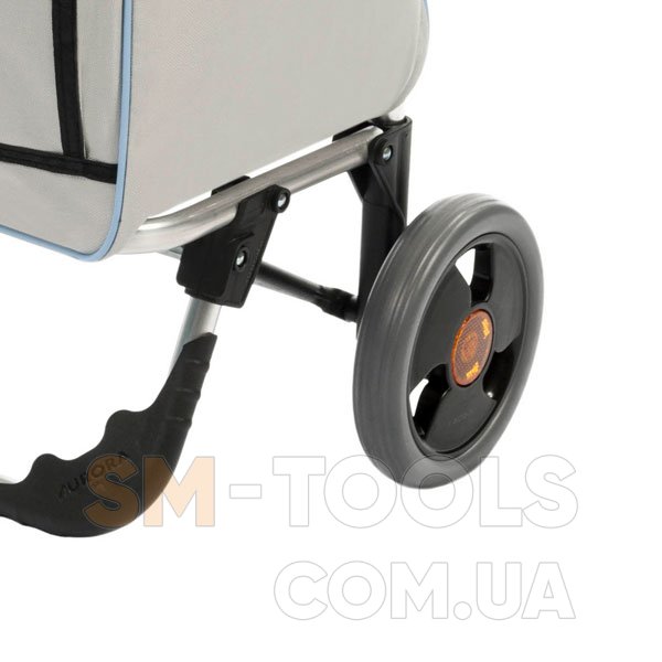- Колеса сумки-тележки оснащены рефлектором, отражающим свет и позволяющим идентифицировать автомобилистам владельца сумки в вечернее время суток.