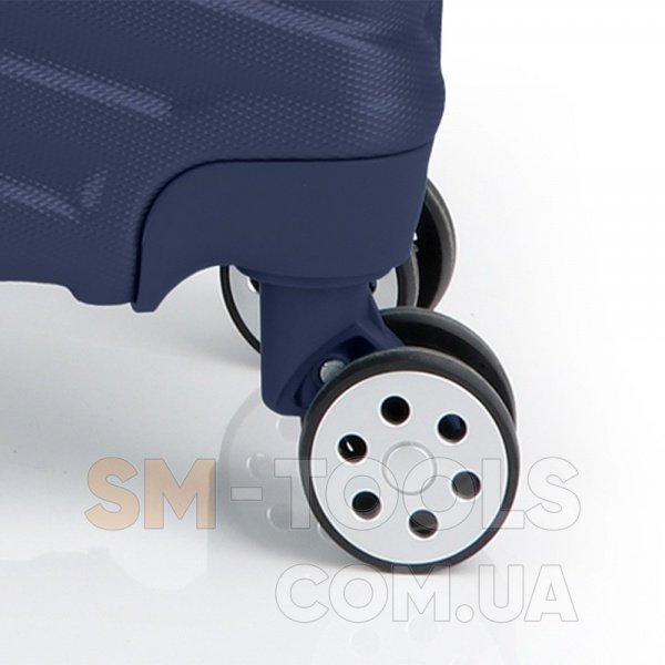 Чемодан оснащен четырьмя полноповоротными, спаренными колесами с возможностью независимого разворота каждого колеса на 360°. Системой предусмотрено равномерное перераспределения нагрузки на каждое колесо, что в свою очередь способствует плавному качению и маневренности чемодана, прилагая при этом минимум усилий.