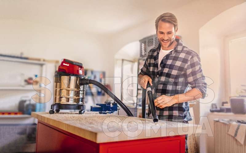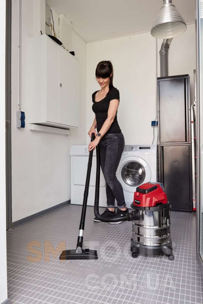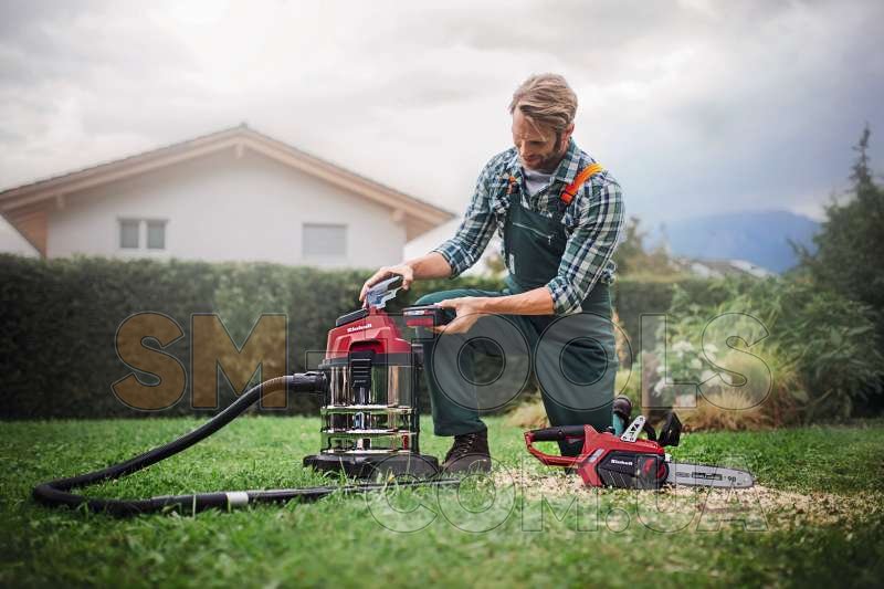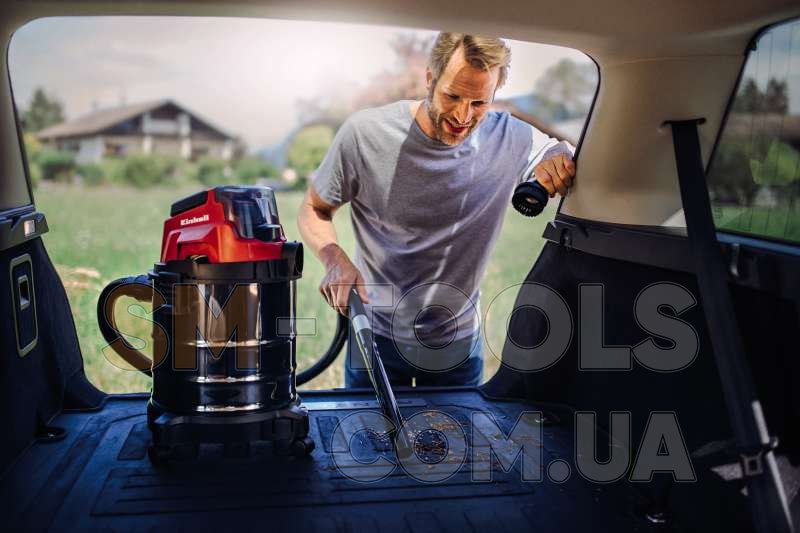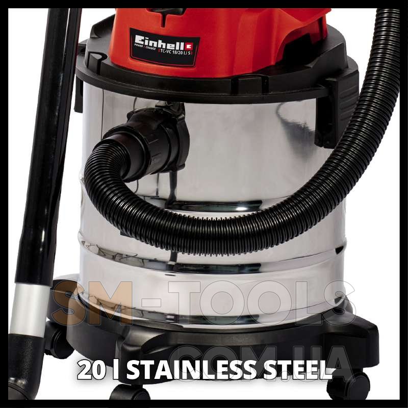 Новый Пылесос аккумуляторный Einhell TC-VC 18/20 Li S - Solo является универсальным многоцелевым пылесосом. Вы можете использовать его для сухой и влажной уборки (убрать разлившиеся жидкости), а также для работы вместе с электроинструментом Einhell . Аккумуляторный пылесос Einhell TC-VC 18/20 Li S - Solo отлично очищает любую поверхность, кроме того автоматически выключается в режиме влажной уборки благодаря поплавковому выключателю. Прочный резервуар из нержавеющей стали имеет емкость 20 л в поставку включен мешок для сбора пыли. Для легкой маневренности он оснащен четырьмя колесиками, а на корпусе встроены держатели для принадлежностей. Подсоединив шланг к адаптеру воздуходува, Вы можете очистить Ваши дорожки в саду от посторонних предметов, сдув их в сторону. Инструмент поставляется без аккумулятора и зарядного устройства, но он может быть приведен в действие с помощью Power X-Change аккумулятора.
