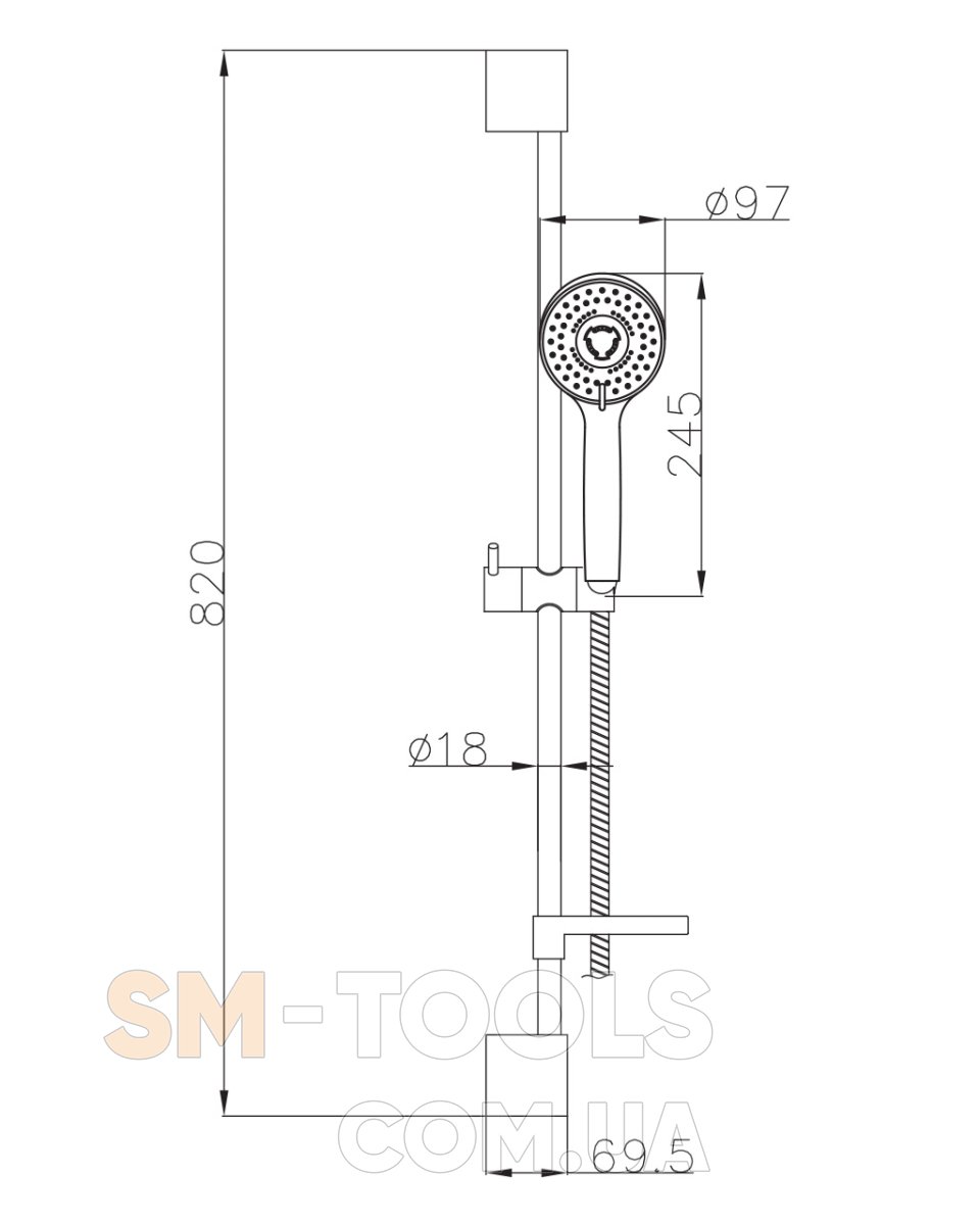 - душевая штанга - высота 820 мм, диаметр 25 мм