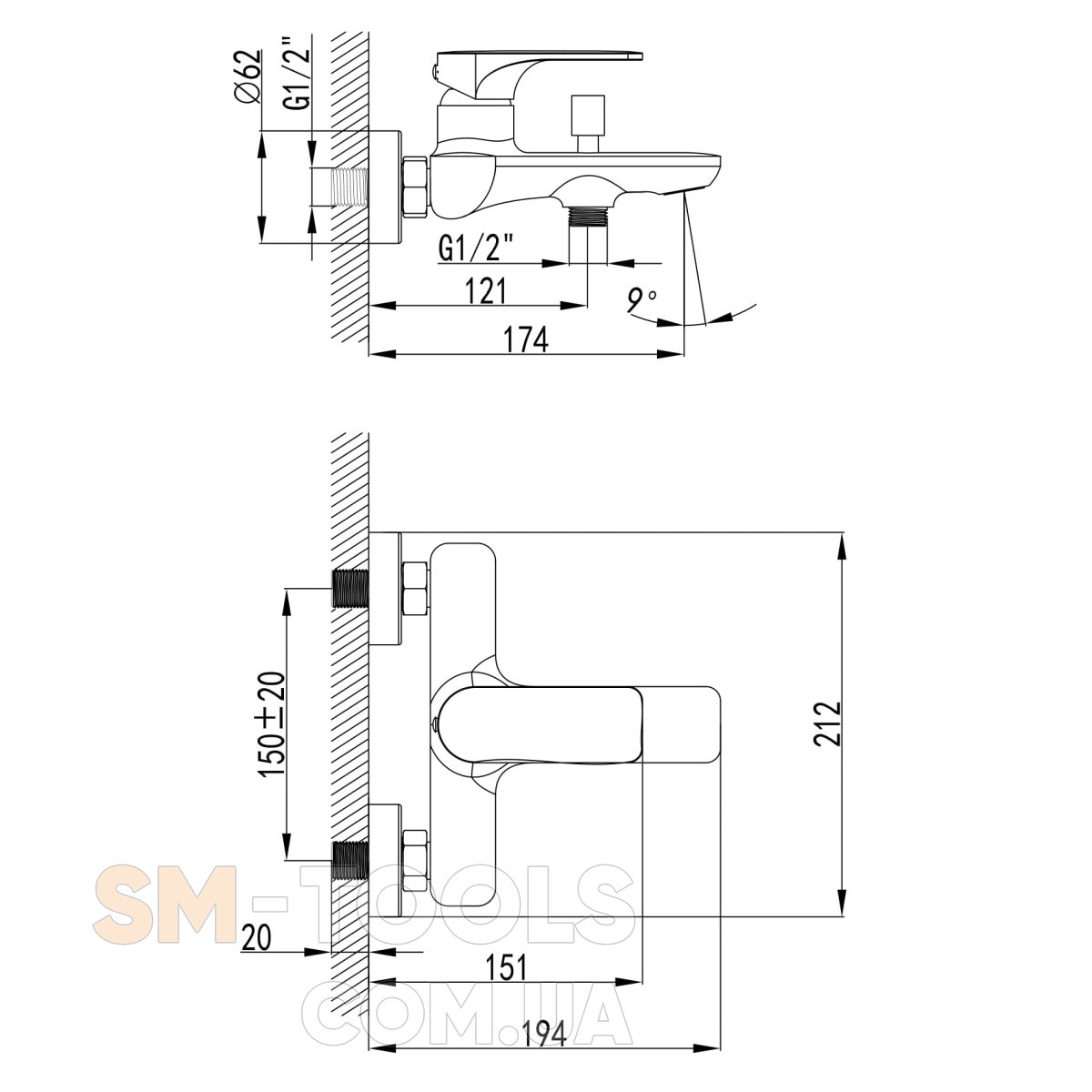 - Смеситель для ванной;