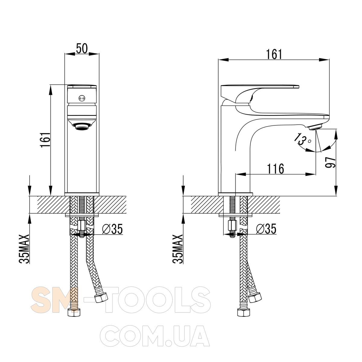 - шланг гибкий двойной оплетки растягивается (150-200 см) с вращающимся конусом (Anti-Twist)