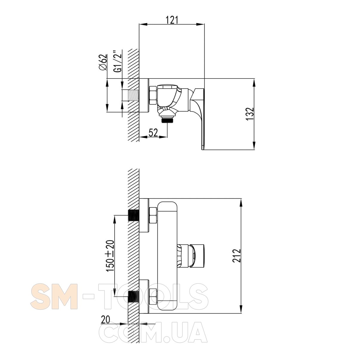- душевая штанга - высота 820 мм, диаметр 25 мм
