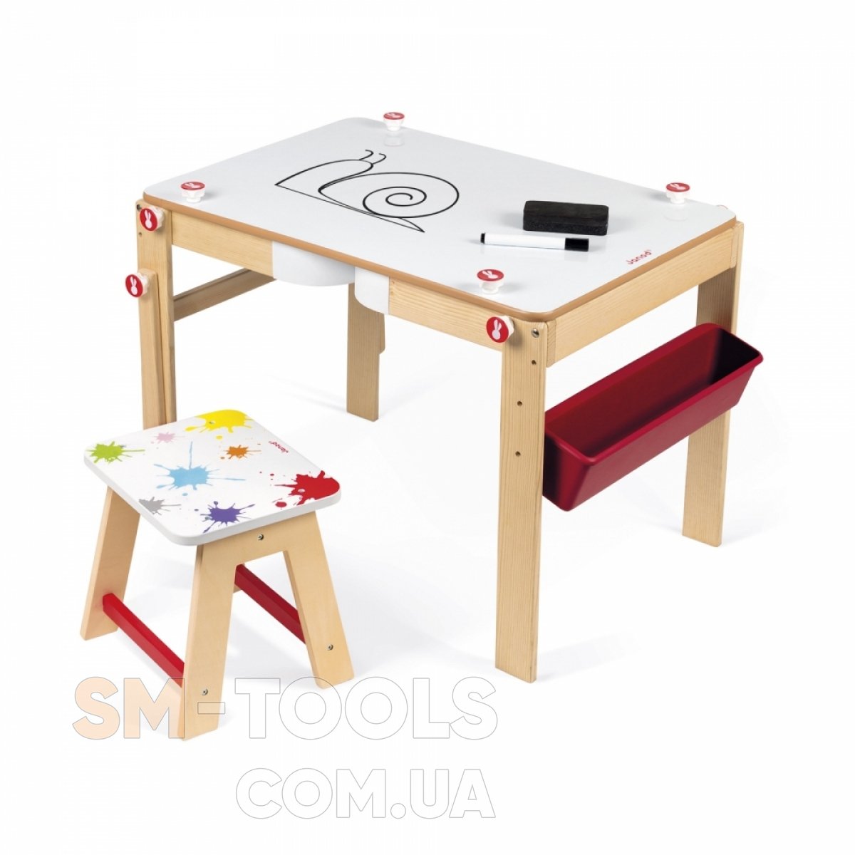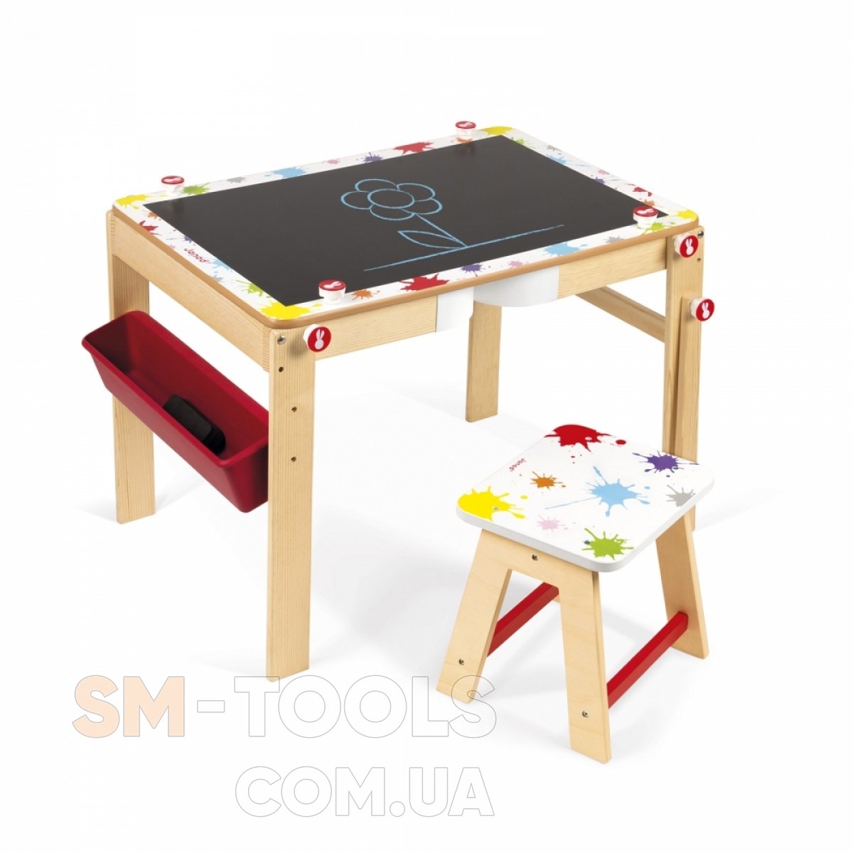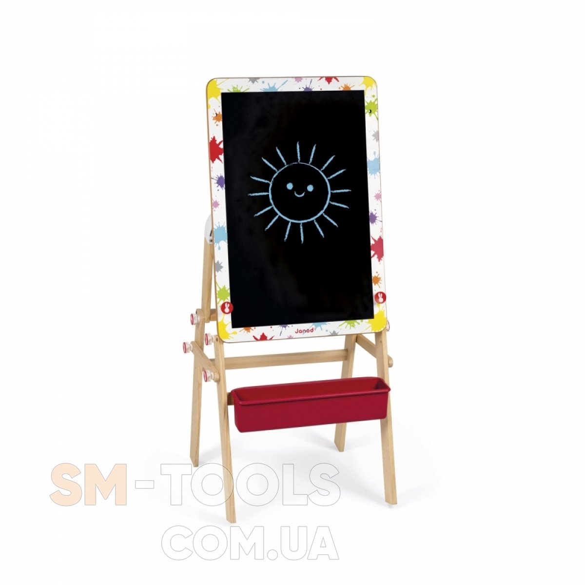 Столик-трансформер для обучения и развития от французского бренда Janod. Столик 2 в 1 трансформируется в мольберт за считанные секунды. Особенность набора - большая двусторонняя поверхность для творчества (70х47,5 см). Идеальный для письма, рисования и обучения. Белая поверхность предназначена для рисования маркерами на ней, черная - для рисования мелом. В пластиковом контейнере удобно хранить карандаши, маркеры, мел, кисточки.