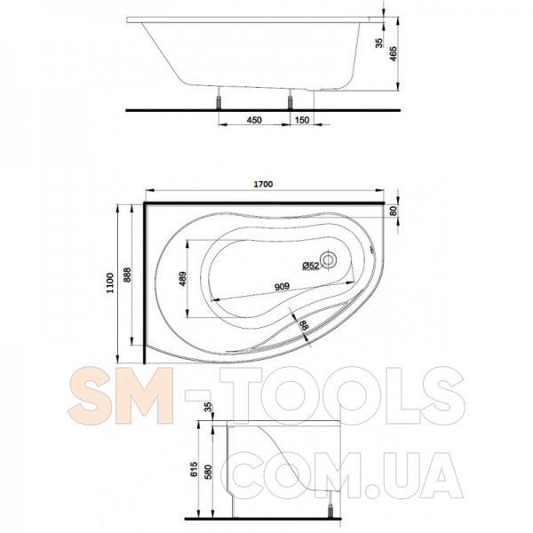 Ванна KOLO Promise 170x110 L XWA3271000 + сифон Viega Simplex 311537