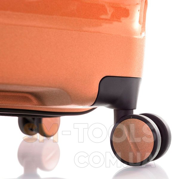 Чемодан оснащен четырьмя полноповоротными колесами системы Spinner с возможностью независимого разворота каждого колеса на 360 °. Системой предусмотрено равномерное перераспределение нагрузки на каждое колесо, что в свою очередь способствует плавному качению и маневренности чемодана, прилагая при этом минимум усилий.