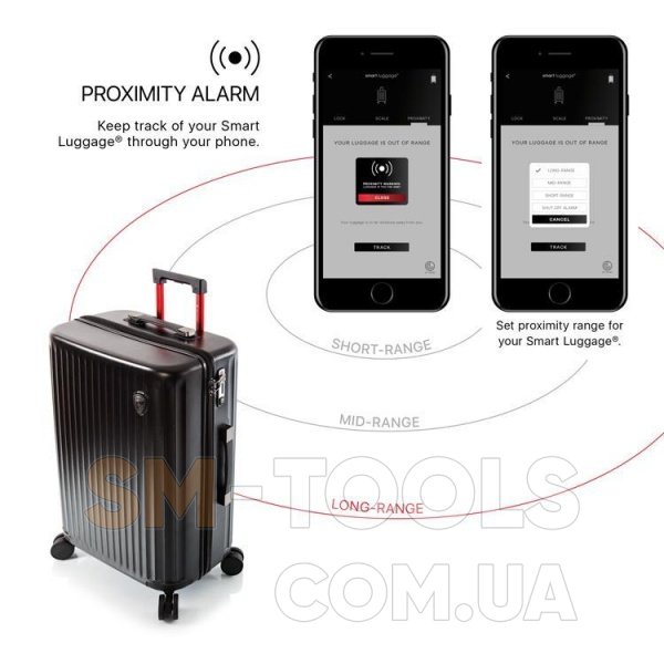 Управление и контроль за багажом осуществляется при помощи смартфона/планшета на базе операционной системы устройства iOS или Android. Установив программу, пользователь получает доступ к следующему функционалу: