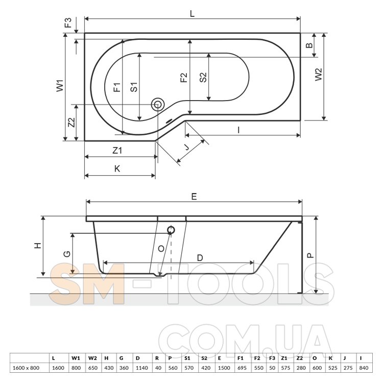 - глубина - 430 мм (до перелива - 360 мм)