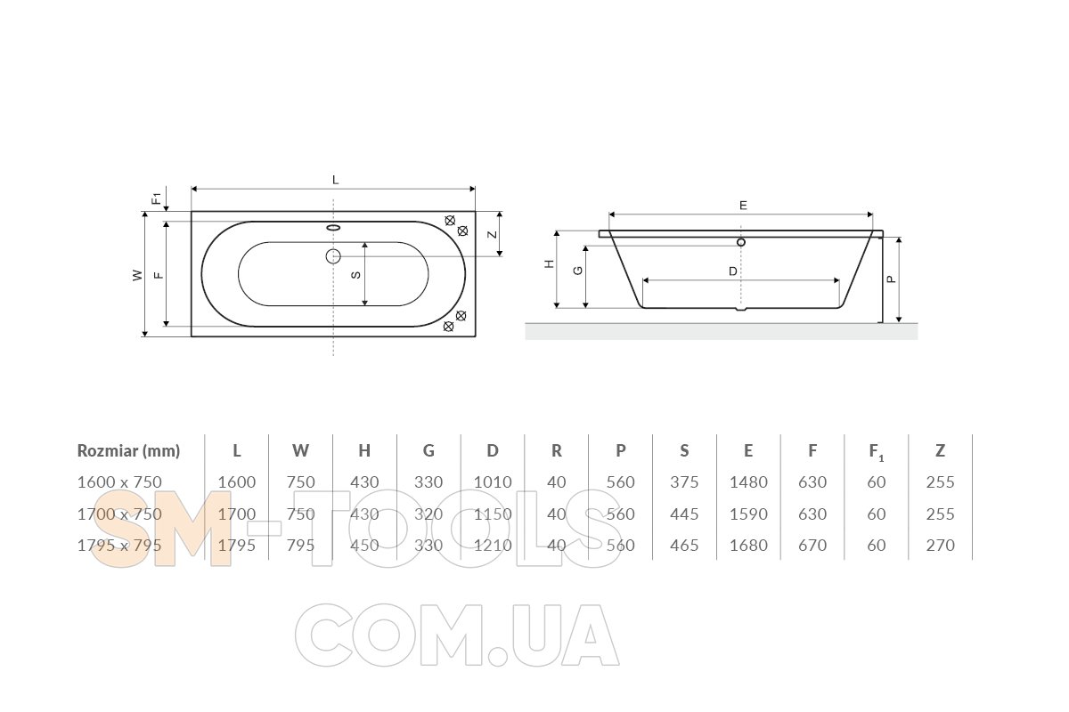 - глубина - 430 мм (до перелива - 330 мм)