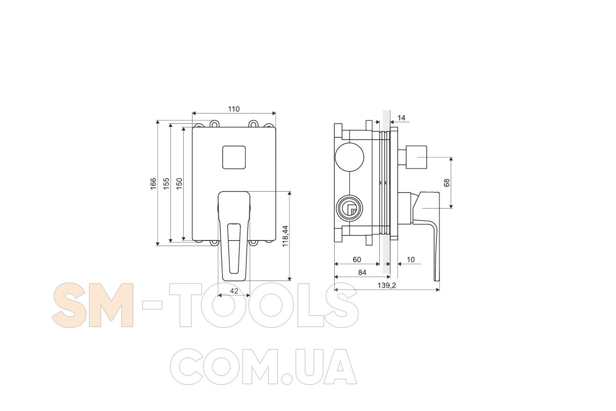 Тип установки Настенные скрытые