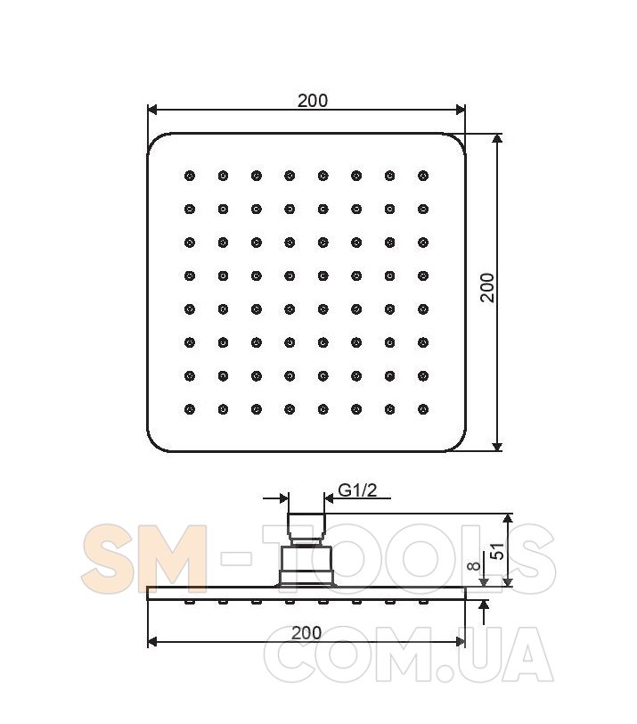 Размер душевого диска 200 х 200 мм