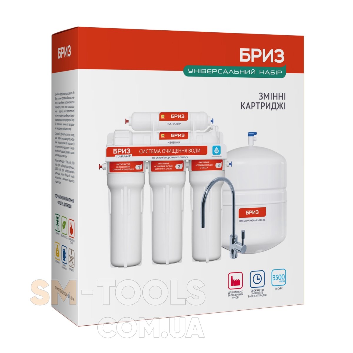 Ресурс комплекта картриджей «Бриз Гарант №1 Оптима» при соответствии качества подаваемой на систему очистки воды требованиям к питьевой воде в соответствии с действующим законодательством (ГСанПИН 2.2.4-171-10) составляет не менее 3500 л.