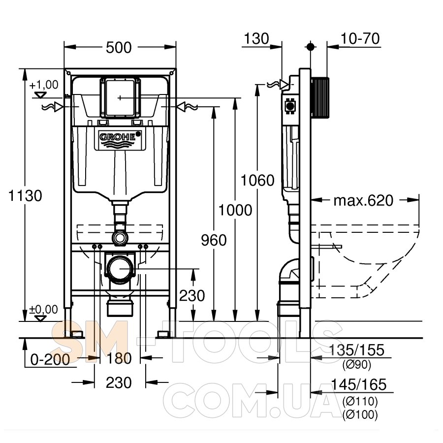Застенный модуль для подвесного унитаза Grohe Rapid SL (38528001)