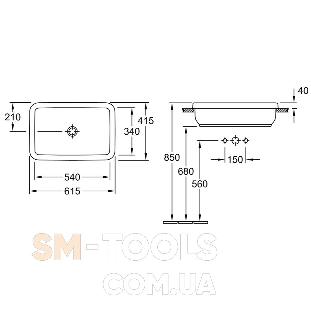 Умывальник Villeroy & Boch ARCHITECTURA со смесителем Impresse GRAFIKY