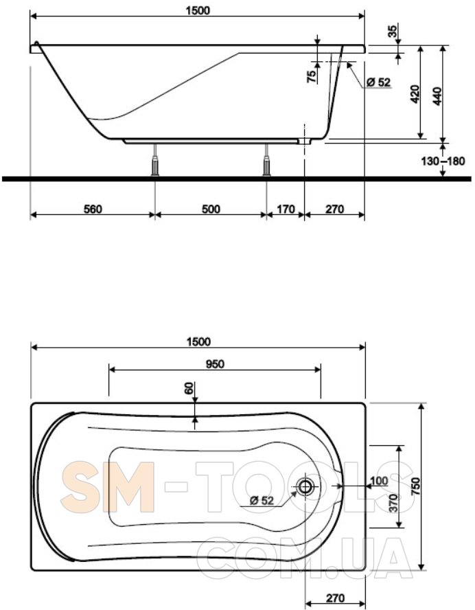 Ванна KOLO COMFORT 150*75 см, с ножками и сифоном автомат