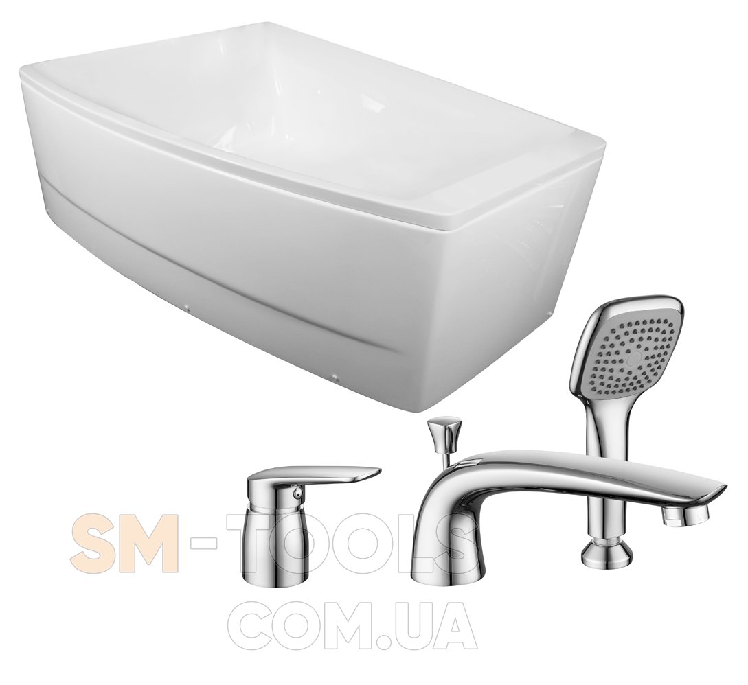 Ванна Volle акриловая асимметричная 1700*1200*630мм, левая с врезным смесителем Impresse Praha new
