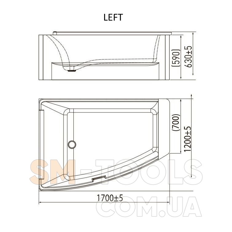 Ванна асимметричная без гидромассажа, 1700*1200*630мм, левая, акриловая