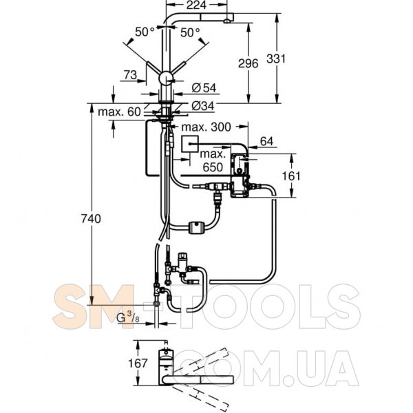Высота излива (мм) 296