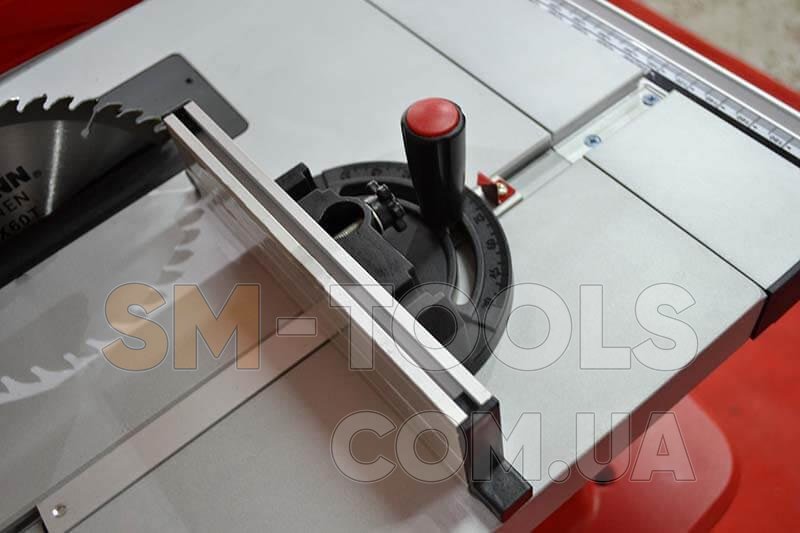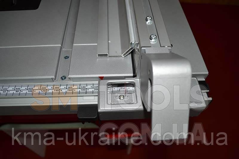 Параллельный упор крепится к алюминиевой линейке с шкалой. Специальный зажим закрепляет упор в нужном положении.