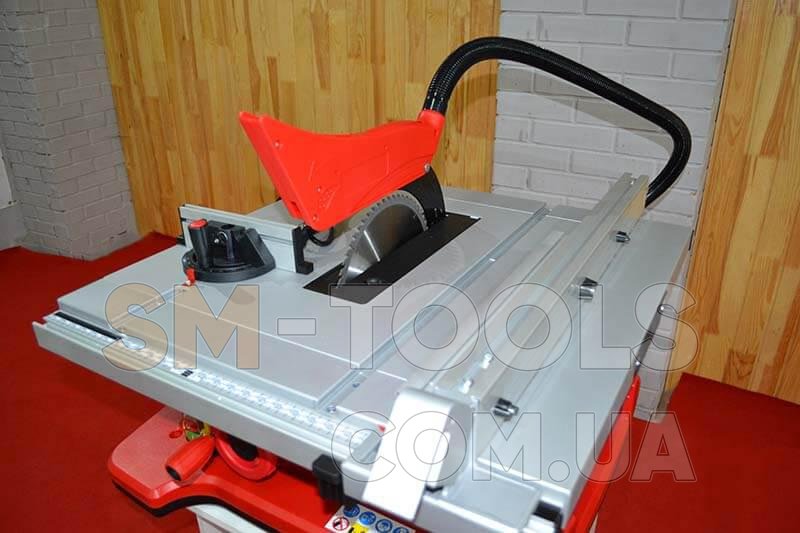 Holzmann TK 255 оснащен надежный мощным электродвигателем, потребляемая мощность которого 2000 Вт. Благодаря этому двигателю скорость оборотов на холостых ходах может достигать 4800 об/мин, чего вполне достаточно для качественного результата, то есть чистого реза. Помимо этого двигатель оснащен электронной систеой защиты от перегрузок. Не стоит забывать и о самом режущем диске, который напрямую влияет на процесс резания, поэтому используются круги из прочных материалов, а конкретно, для данной модели их внешний диаметр составляет Ø254, а посадочное отверстие Ø30 мм.
