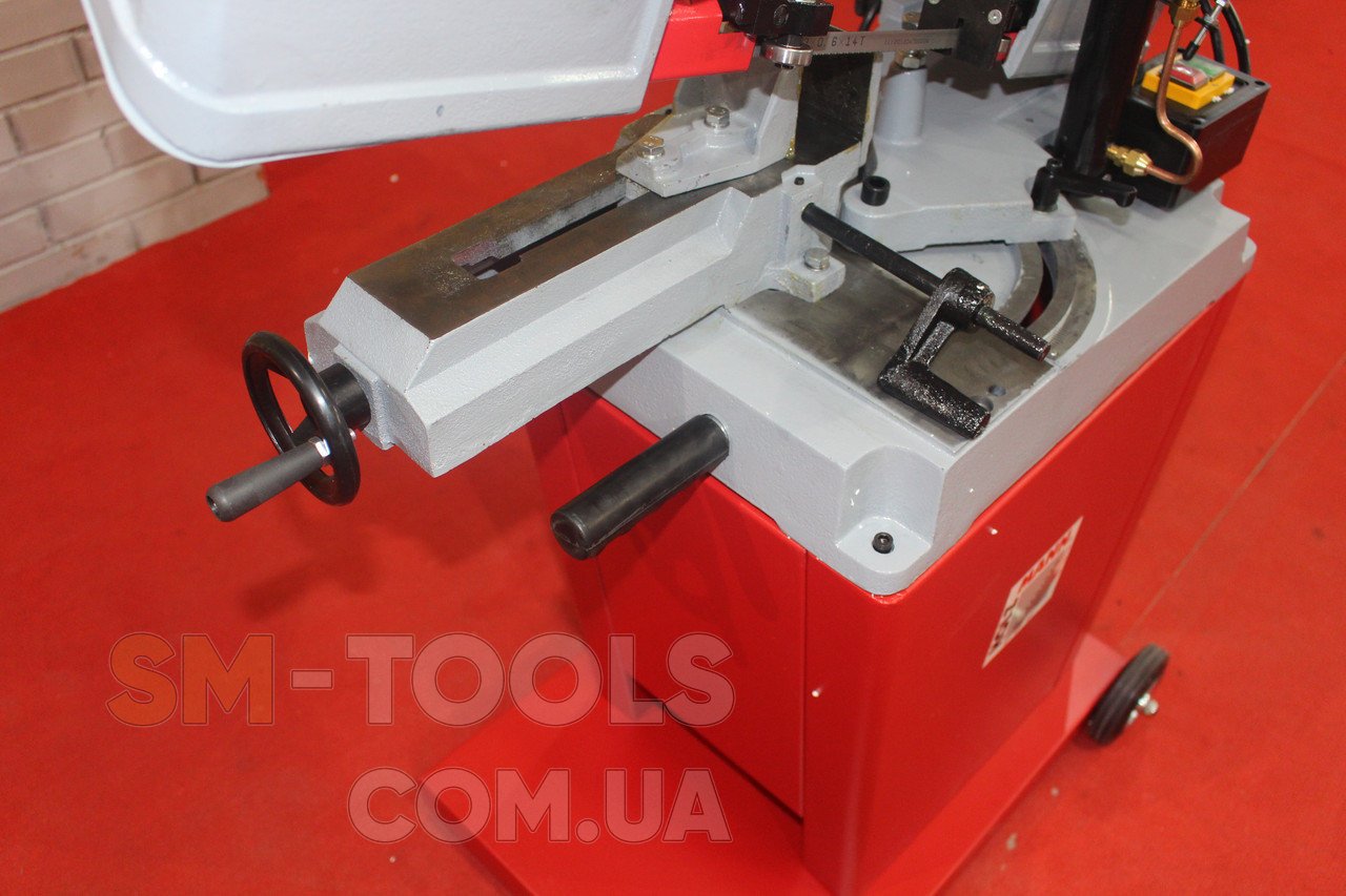 При достаточно большом весе, легко перемещается, благодаря двум колесам. Большая длина тисков, что позволяет зажимать большие заготовки. Есть автоматическая регулировка реза, что упрощает работу. Качество ленточной пилы на очень высоком уровне, один из выборов в своем ценовом сегменте.