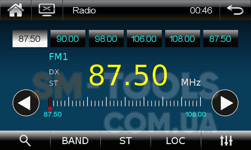 Радио тюнер: память на 18 FM станций.