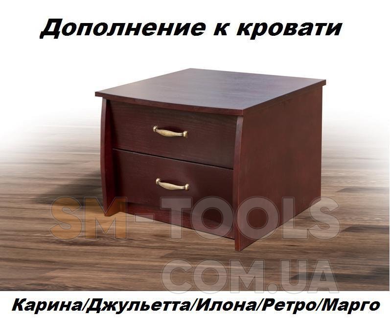 Тумбочка идеально подходит для кроватей "Илона", "Карина", "Джульетта", "Марго", "Ретро". Каркас изготовлен из массива дерева, что обеспечивает долговечность изделия. Сверху тумбочка покрыта качественными лакировочными материалами.