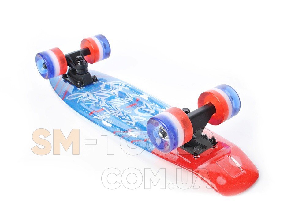 Скейтборд Buffy 3 x Flash - скейт из специальной серии миникрузеров со светящимися колесами и прозрачной декой. Подойдет для начинающих и продвинутых райдеров.