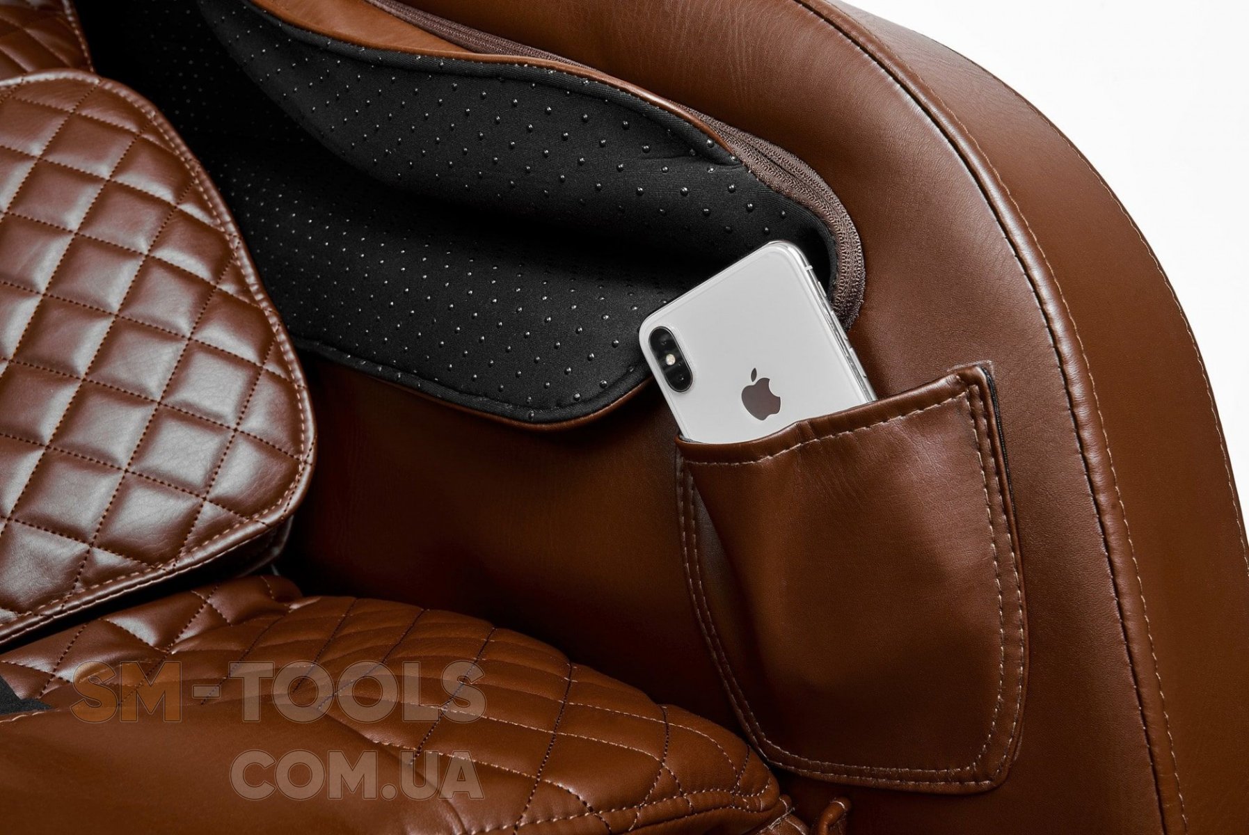 Кресло оснащено встроенными динамиками, которые позволяют дополнить сеанс любимой музыкой. Функция Bluetooth позволяет подключать к креслу всевозможные музыкальные гаджеты. Кроме того, можно включить функцию синхронизации массажа с музыкой.