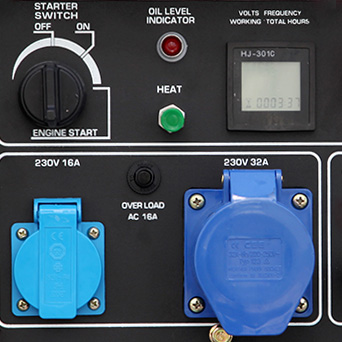 Зручна ергономічна панель дозволяє з легкістю керувати всім агрегатом і не потребує додаткових навичок. Сучасний багатофункціональний LED-дисплей відображує частоту, вольтаж, та кількість відпрацьованих генератором годин. Інформація на дисплеї допомагає легко контролювати якість напруги, що видається пристроєм. Оснащений кнопкою аварійної зупинки двигуна.