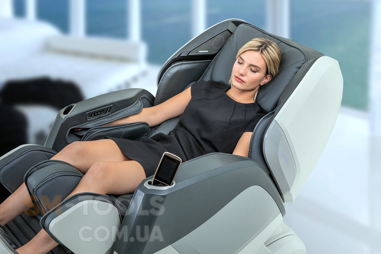 Массажное кресло Aura оснащено инновационным 4D массажем, который сочетается с усовершенствованной SL-кареткой для выполнения глубокого массажа от шейно-воротниковой зоны до нижней части бедер.