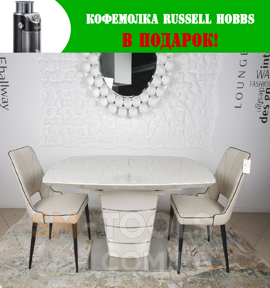 Стол обеденный Nicolas Atlanta Крем MD000189 + Кофемолка Russell Hobbs 23120-56