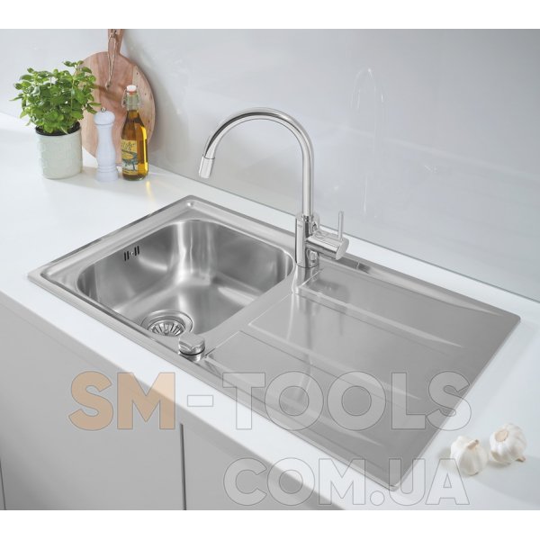 Мойка GROHE K400+ из нержавеющей стали - очень прочная, надежная и практичная мойка, которая справится с любой задачей. Мойка имеет два подготовленных под смеситель отверстия, что делает ее полностью оборачиваемой. Плоский монтаж обеспечивает бесшовную посадку с рабочими поверхностями. Мойка предлагает большое внутреннее пространство, а глубина чаши составляет 18,5 см, что означает, что вы с легкостью сможете наполнять даже большие емкости. Мойка оснащена рядом умных характеристик: например, изоляция GROHE Whisper на нижней части мойки уменьшает шум, а автоматический клапан с управлением на мойке подразумевает, что вы можете вытащить пробку, не опуская свою руку в грязную воду. Мойка изготовлена из ультра прочной нержавеющей стали AISI 304, которую порой называют "marine steel", она устойчива к ржавчине, коррозии, кислотам и хлору. Благодаря системе быстрого монтажа GROHE QuickFix установка мойки не займет много времени и не потребует дополнительного оборудования.
