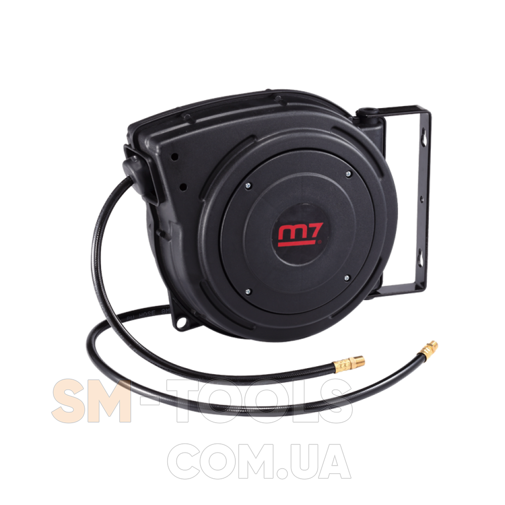 Работая с пневматическим оборудованием, не обойтись без шлангов. Производитель из Тайваня Mighty Seven выпустил готовый комплект — шланг на бобине — для пневматического оборудования и инструментов. Диаметр штуцера составляет 1⁄4 дюйма (тип соединения резьбовой). Благодаря такому исполнению, все составляющие компактно собраны и всегда под рукой. Шланг легко размотать и смотать. Производитель использовал армированный материал (24 металлические нити) с полиуретановым покрытием. Соединения быстроразъемные, ЕВРО-формата.
