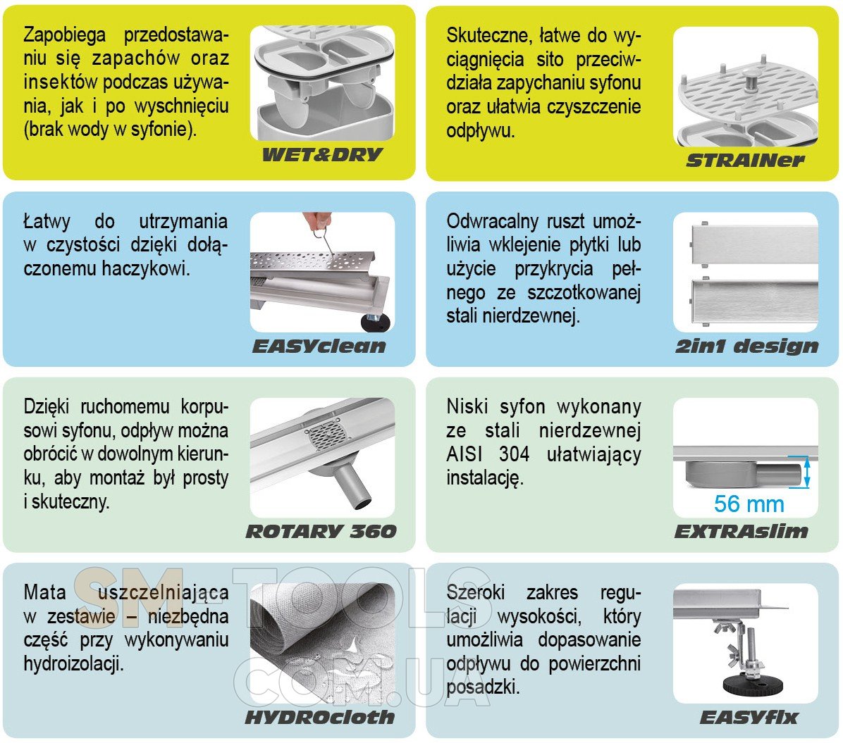 EASYfix - широкий диапазон регулировки высоты, который позволяет регулировать слив на поверхность пола.