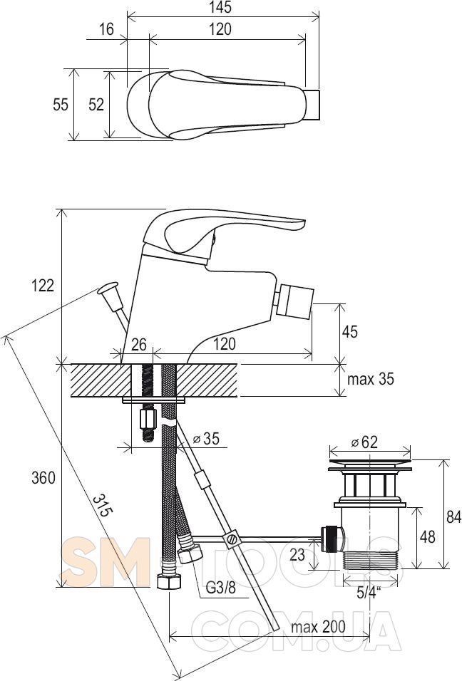 Соединяющие шланги: гибкий 360 мм, диаметр G3 / 8