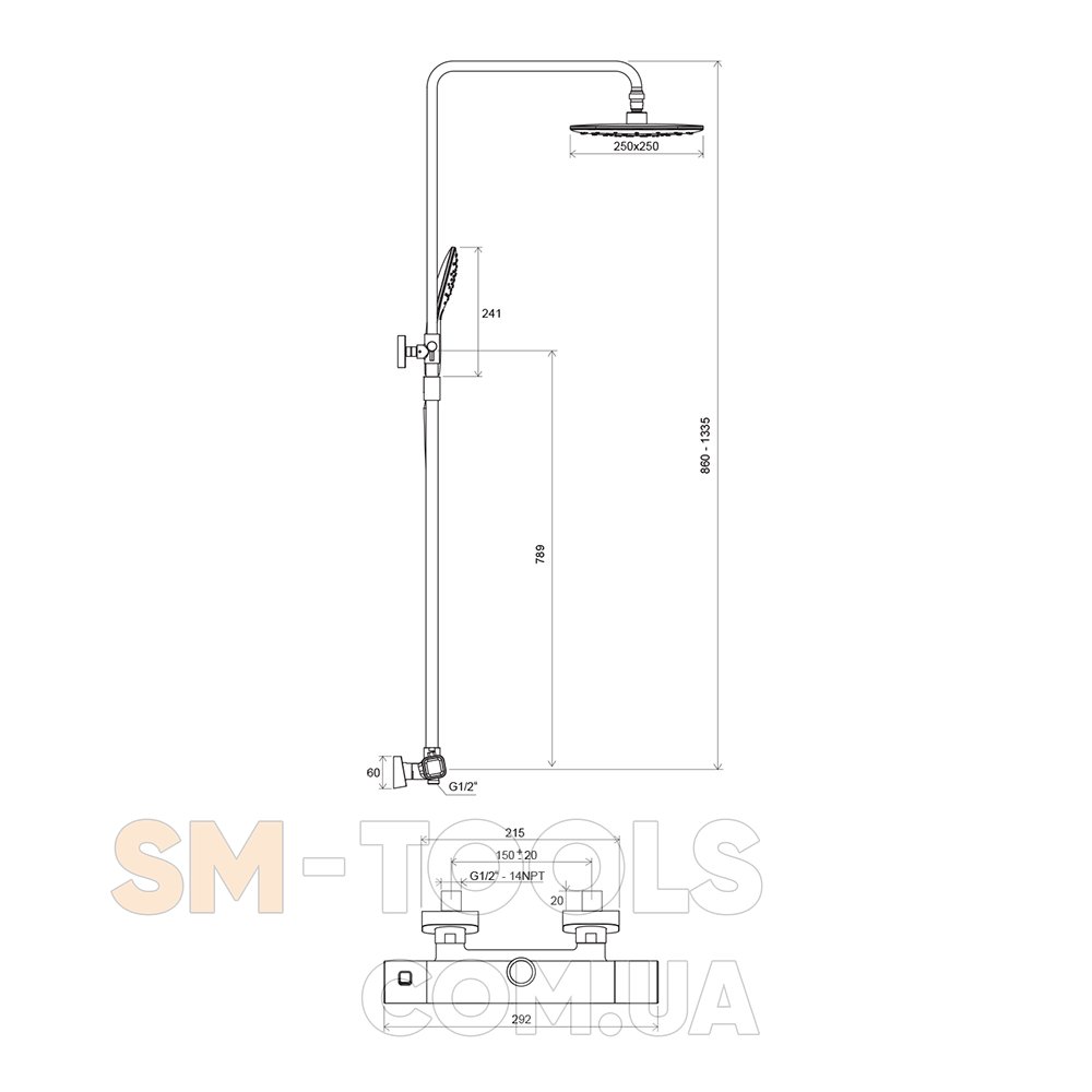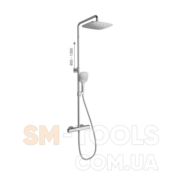 Высота расположения верхнего душа регулируется и после монтажа на стену. Верхний душ поворачивается в разные стороны.