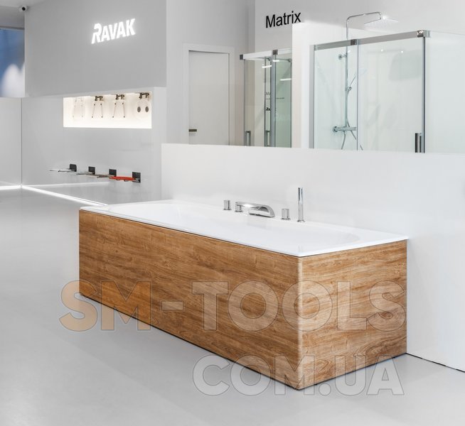 Ванну можно дополнить шторами для ванн CVS2, VS2, VS3, VS5, PVS1, BVS1, BVS2, AVDP3. Переднюю и боковую панели можно приобрести в белом цвете или в декоре орех, дуб или сатиновое дерево. К ванне используется слив длинной в 800 мм.
