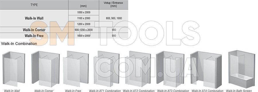 Все изделия Walk-In Wall можно комбинировать с любым размером W SET Wall/Corner.
